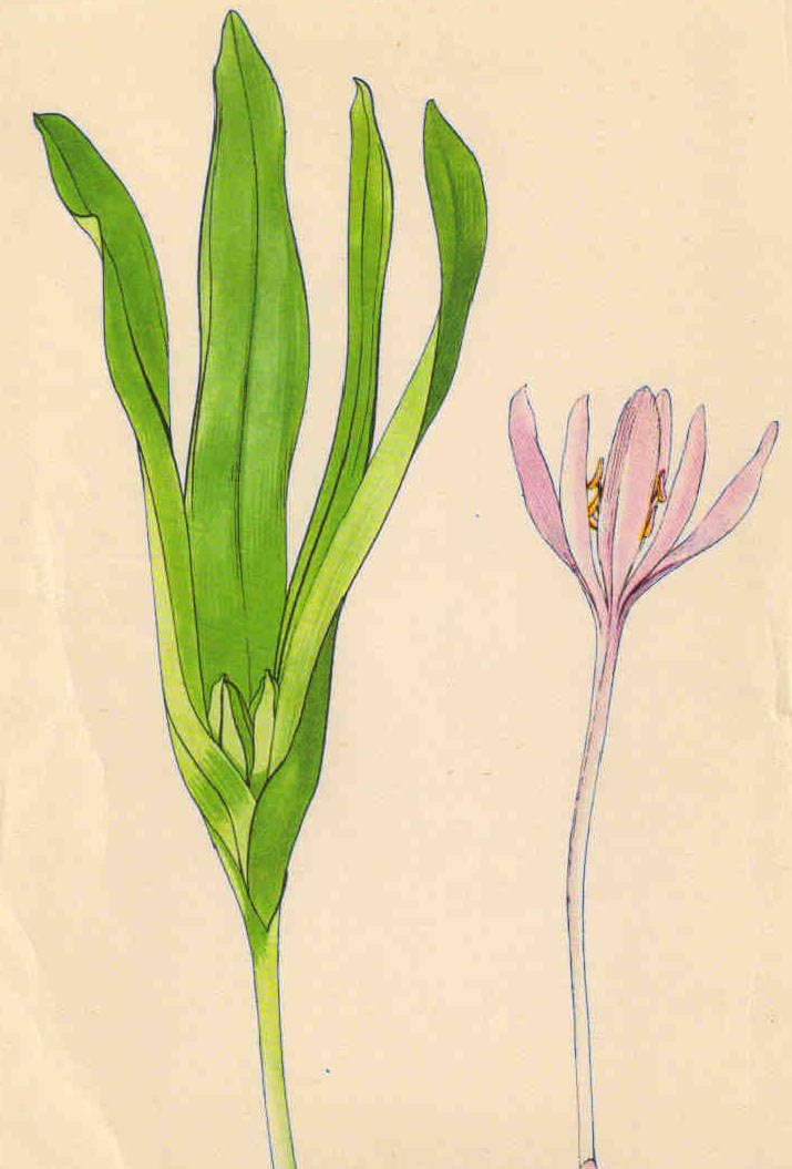 Je to vytrvalá rostlina s neobvyklým životním cyklem. Hluboko v zemi má až 7 cm dlouhou hruškovitou hlízu, z jedné strany vypouklou, z druhé strany plochou a žlábkovitou. Hlízu obaluje blanitá pochva - zbytek pochvy loňského listu. Na jaře se na spodku hlízy na ploché straně vytvoří obnovovací pupen, z něhož přes léto vyroste jen kratičký a stále v zemi ukrytý stonek. Je spojen s hlízou, která funguje jako zásobárna živin. Stonek má 2 až 3 blanité pochvy a několik šupinkovitých základů budoucích listů a základy pěti květů. Na podzim z těchto základů vyrostou až nad povrch země jeden až tři květy a ostatní zakrní.