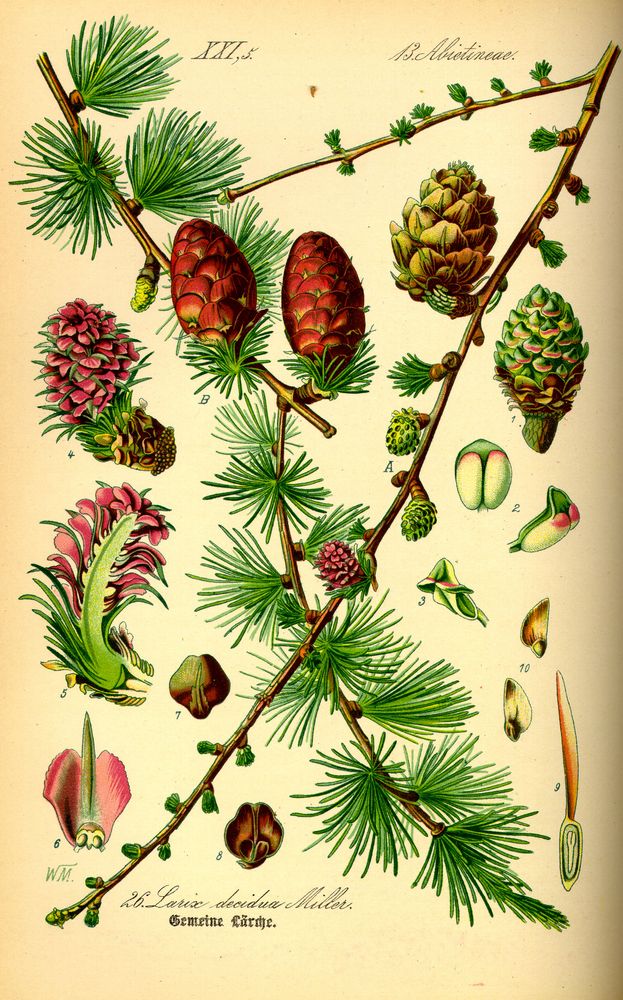 Je to až 50 m vysoký, hluboko kořenující, světlomilný, opadavý jehličnan, v mládí rychle rostoucí, s korunou zprvu úzce kuželovitou, později často širokou se zploštělým vrcholem. Větve tenké, víceméně dolů skloněné. Letorosty mají žlutavou kůru. Jehlice na delších větvích jsou jednotlivé, střídavé, na kratičkých bradavicovitých brachyblastech ve svazečcích po 30 - 50 jehlicích, 1,5 - 3 cm dlouhých, plochých, měkkých, světle zelených, na podzim světle žlutých, opadavých. Květy raší před listy nebo současně s nimi, jsou jednodomé, na brachyblastech. Samčí květy jsou na spodní straně větévek nahloučené, 5 - 10 mm velké, žluté, samičí jsou v přímých, 1 - 3 cm dlouhých, živě červených šišticích. Šišky jsou vzpřímené, 3 - 4 cm dlouhé, vejcovité, hnědé, s rovnými semennými šupinami (plodolisty), na kraji neohrnutými. Šišky zůstávají po celá léta na stromě neopadané. Borka je ztlustlá, šedohnědá, často červenohnědě skvrnitá, hluboce brázditá, šupinatě se odlupující. Kvete od března do května.