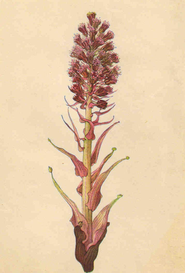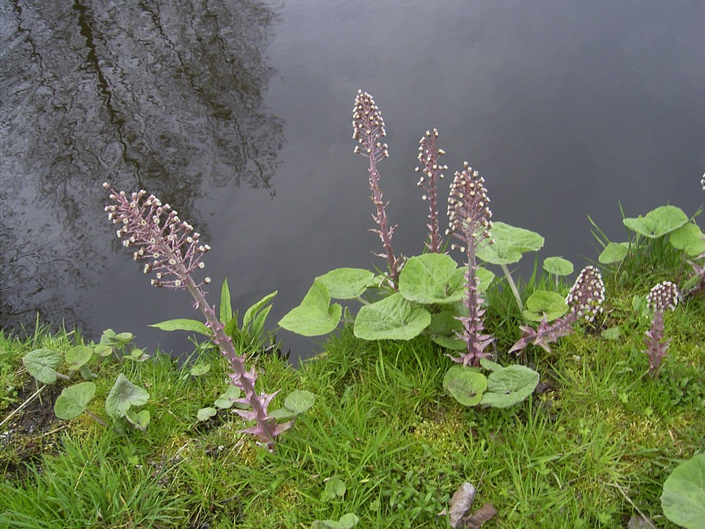 Samčí rostliny mají květy více nahloučené a jsou nižší - asi 20 cm. Samičí rostliny tvoří hrozen s květy více stopkatými a jsou vyšší, až 30 - 40 cm. Dříve dozrávají prašníky. Opylení zprostředkuje hmyz a vítr. Po odkvětu se lodyha prodlužuje. Plodem je nažka se špinavě bílým ochmýřeným chocholem; dozrává koncem května. Semena roznáší vítr, zvěř a další živočichové. Během odkvětu vyrůstají teprve dlouze řapíkaté listy, které jsou nápadné velkou, trojhranně srdčitou, mělce zubatou čepelí, která mnohdy dosahuje rozpětí až 50 cm. Jsou to jedny z největších listů u našich rostlin. Čepel je v mládí na rubu jemně plstnatá, později se tato plst ztrácí. Kvete od března do května.