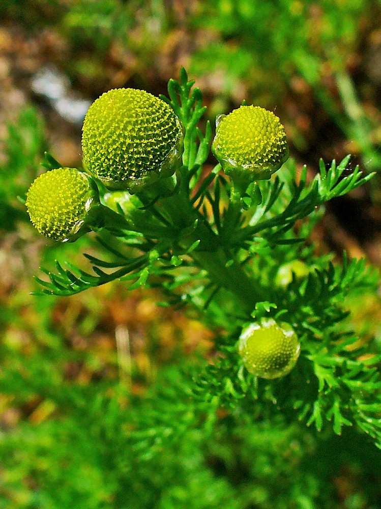 Je to jednoletá, silně vonná bylina, která voní podobně, ale trochu méně příjemně než heřmánek pravý, kterému je blízce příbuzná. Je pouze 5 – 40 cm vysoká, ale statnější, s tlustšími lodyhami a hustšího vzrůstu, hlavně v hořejší polovině rozvětvená, lysá, s listy střídavými, dvakrát až třikrát peřenosečnými v čárkovitě kopinaté, 0,5 – 1 mm široké, špičaté úkrojky. Úbory mají 5 – 8 mm v průměru, jsou složené pouze z pravidelných, oboupohlavných terčovitých kvítků, které mají čtyřcípou žlutozelenou korunu a sedí na kuželovitě vyklenutém lůžku bez plevek. Paprskující květy s korunou jazykovitou nejsou vyvinuty. Zákrov je polokulovitý, složený z víceřadých listenů, jež jsou všecky přibližně stejně dlouhé, podlouhle vejčité, tupé, s širokým, průsvitným a blanitým okrajem. Nažky jsou 1,5 mm dlouhé, na vnitřní straně se 4 nezřetelnými, podélnými rýhami. Kvete od července do září.