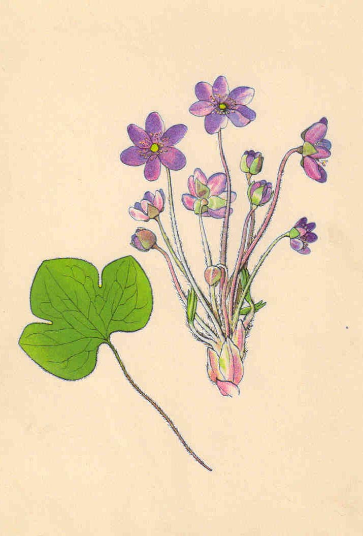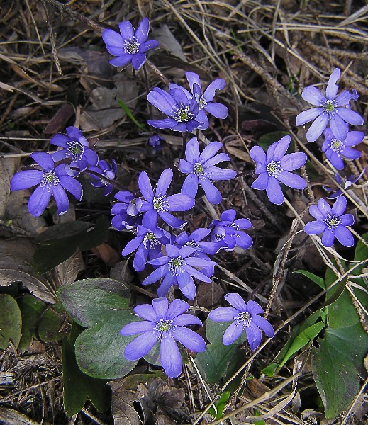 Je to vytrvalá, 5 - 15 cm vysoká bylina s krátkým, vláknitým a tmavohnědým oddenkem, z něhož vyhámí větší počet přízemních listů, dosti kožovitých a vytrvávajících až do jara příštího roku. Na dosti dlouhém a tenkém řapíku sedí srdčitě trojlaločná čepel, jež je v mládí měkce chlupatá a pak olysává, svrchu je zelená a vespod většinou nafialovělá. Vedle loňských listů vyrůstají zjara, většinou před rašením nových lisů, četné jednokvěté lodyhy, jež se podobají květním stopkám. Jsou tenké a krátké a nesou 3 celokrajné a neřapíkaté listeny asi 1 cm dlouhé. Listeny se dohromady podobají kalichu, neboť sedí na lodyze těsně pod vzpřímeným květem, jenž je složen ze 6 - 7 (10) azurově modrých (řidčeji růžových nebo bílých), zevně bledších, úzce vejčitých okvětních lístků a četných bělavých tyčinek a pestíků. Za plodu se pestíky mění v chlupaté nažky s krátkým zobánkem. Kvete v březnu až květnu.